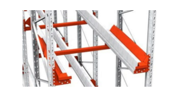 The Radioshuttle racking system and guidance rail aid the operator in loading Radioshuttle units into the structure and guides pallets into the first position.